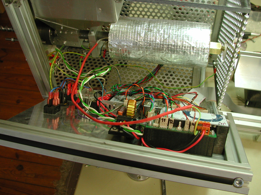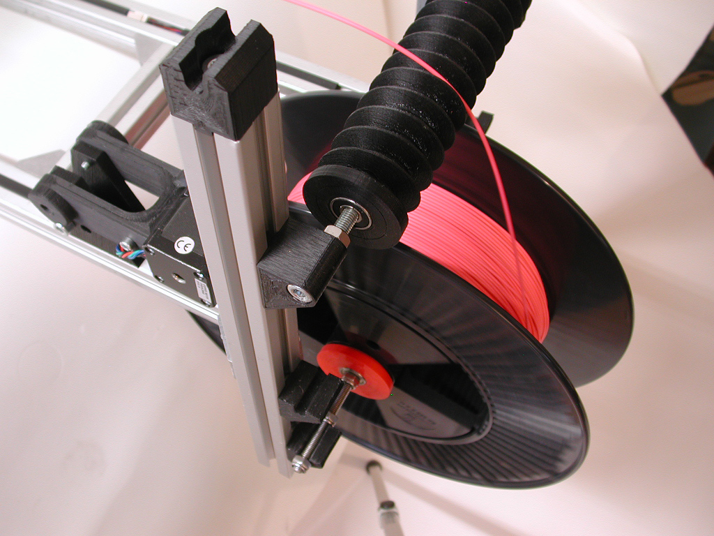 Ein weiterer Schrittmotor (Winder) treibt die eine Vorratsrolle an, auf der der extrudierte Draht aufgewickelt wird.