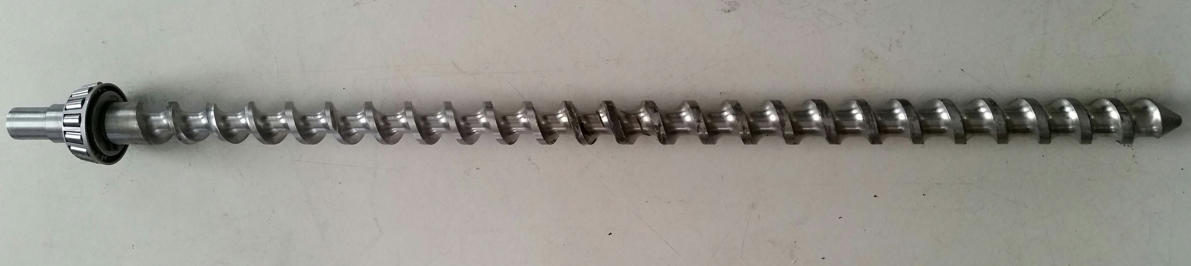 Schnecke mit Einzugs-, Kompressions- und Austragszone. Die Schnecke